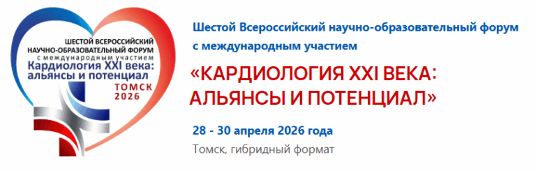 Всероссийский научно-образовательный форум с международным участием «Кардиология XXI века: альянсы и потенциал» состоится в Томске с 28 по 30 апреля 2026 г. в очном и онлайн форматах.