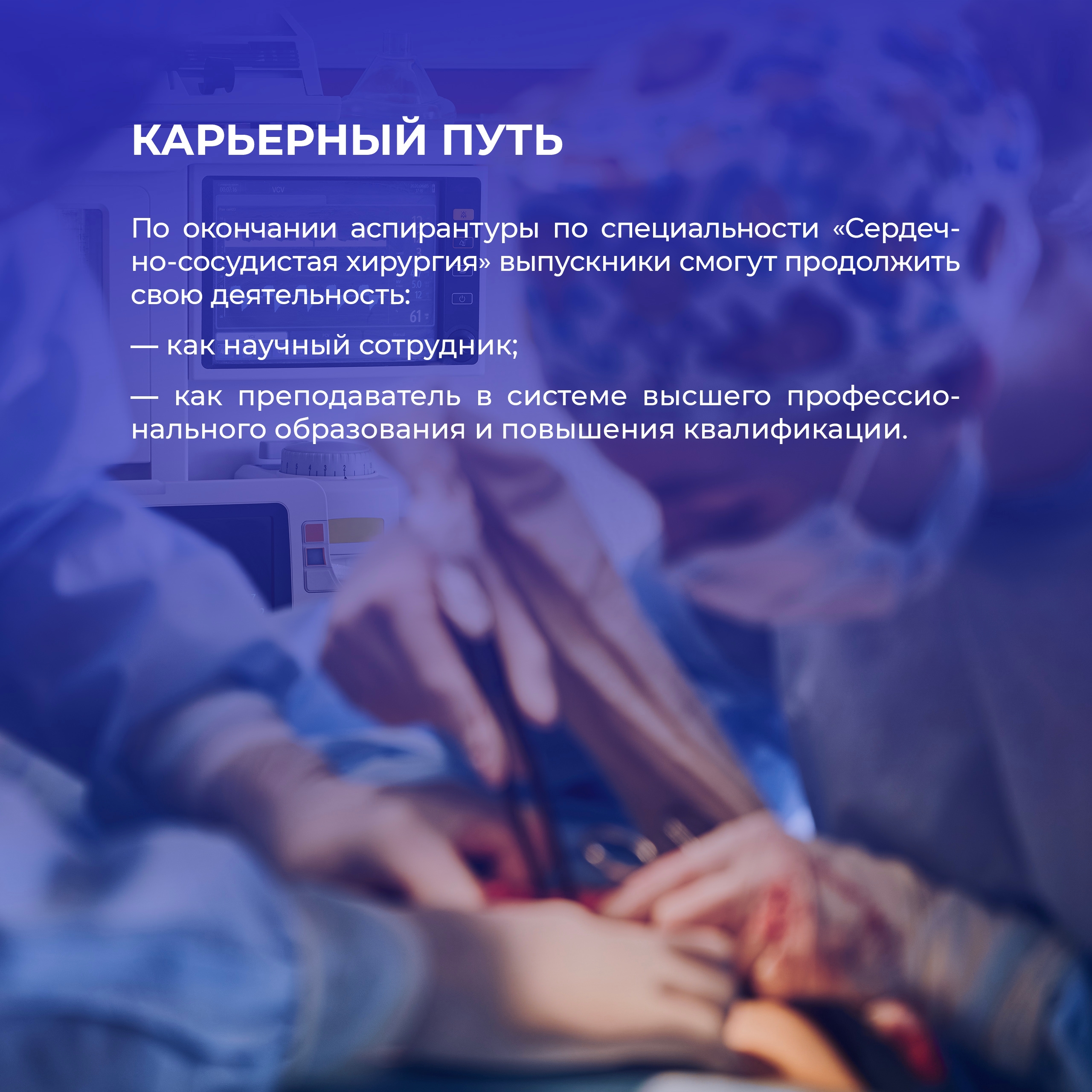 - получение глубоких современных знаний и навыков в области сердечно-сосудистой хирургии;