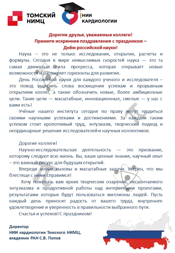 Поздравление директора НИИ кардиологии Томского НИМЦ, академика РАН С.В. Попова