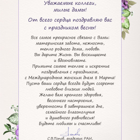 Поздравление директора НИИ кардиологии Томского НИМЦ, академика РАН С.В. Попова